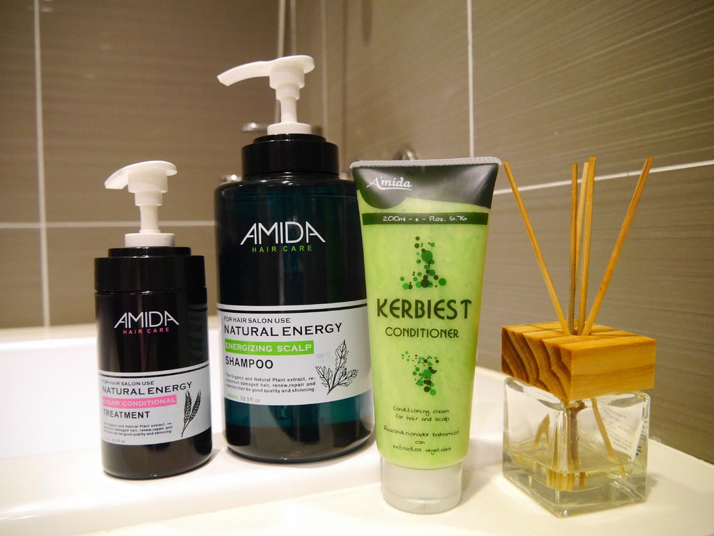 強調天然萃取的【Amida 蜜拉】洗護產品,包裝以深色瓶裝簡單大方,