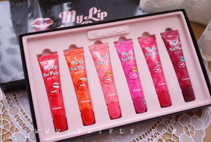 這次收到的是 韓國 Berrisom~ 可撕式染色唇膜 6 件豪華組,每個顏色都好令人期待呀~
