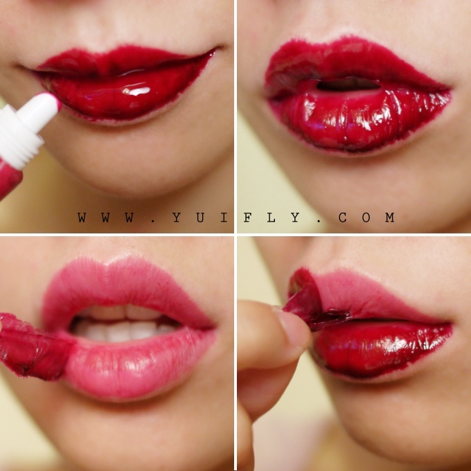 還有一個小撇步,把唇膜撕掉後,可以稍微用遮瑕膏塗在唇緣,就變成咬唇妝啦!