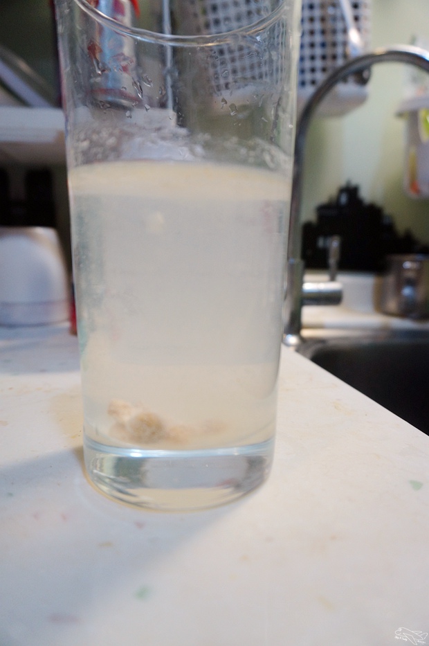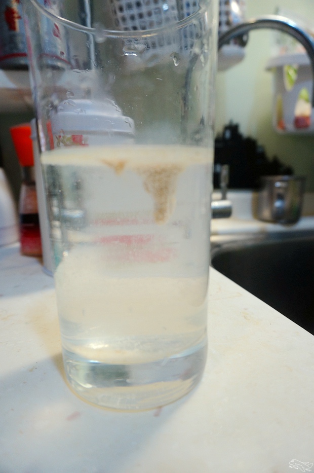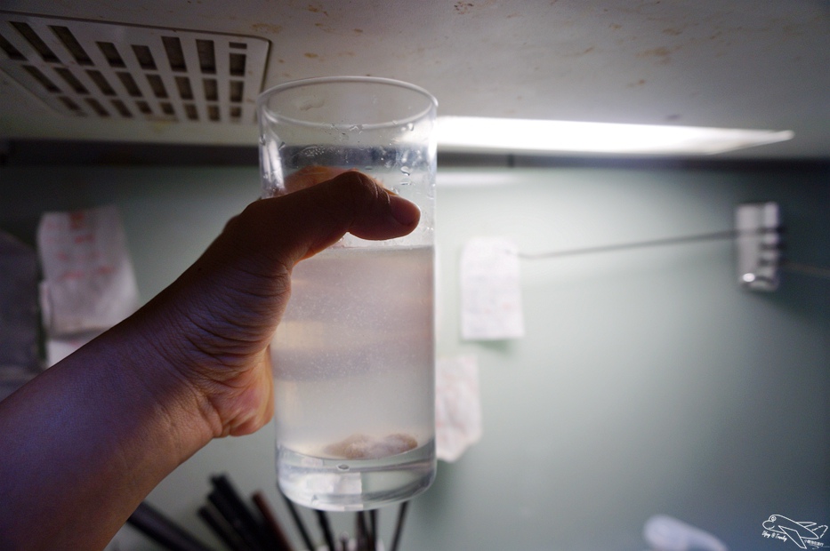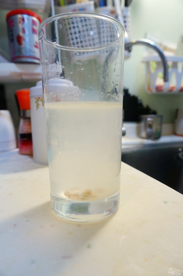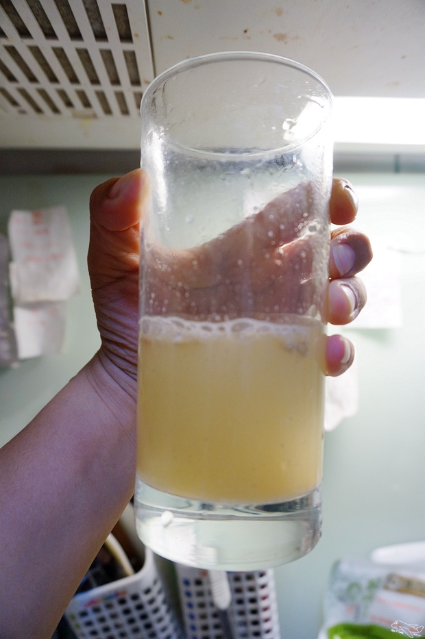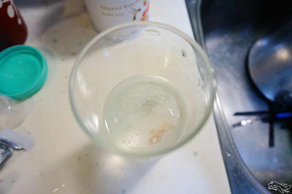 最後我把杯子清洗過再做一次利用清水泡菇菇粉,泡起來其實就是果汁的樣子,沒有剛剛倒入橄欖油後,包覆一坨的模樣~