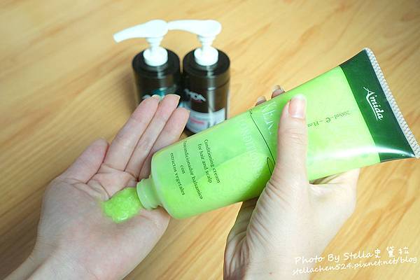 接下來再使用-Amida葉綠素(頭皮,髮)調理素 給頭皮做個SPA