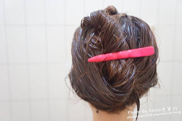 S自己在家使用的話,都會把蛋白護髮素抹上髮尾後順一下夾起來