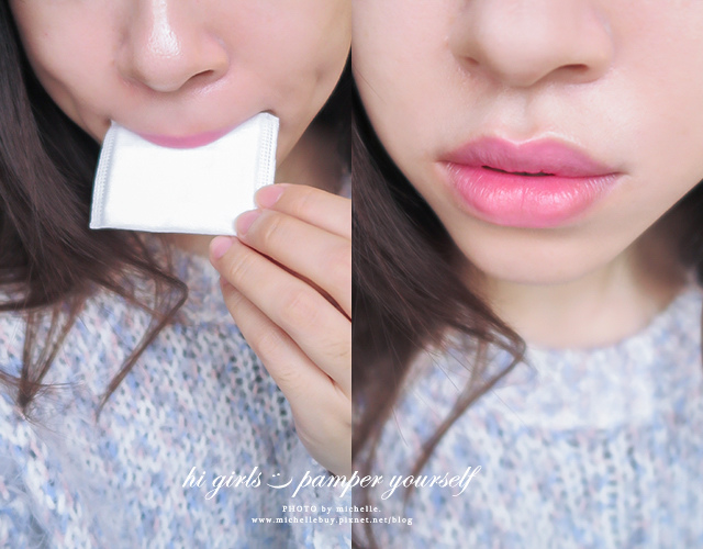 畫法也超級簡單,在畫好的唇妝上用衛生紙或是化妝棉稍微把唇彩抿掉一些