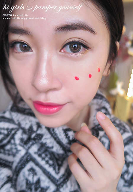 接著直接用指腹沾取唇頰露,點在蘋果肌的部分