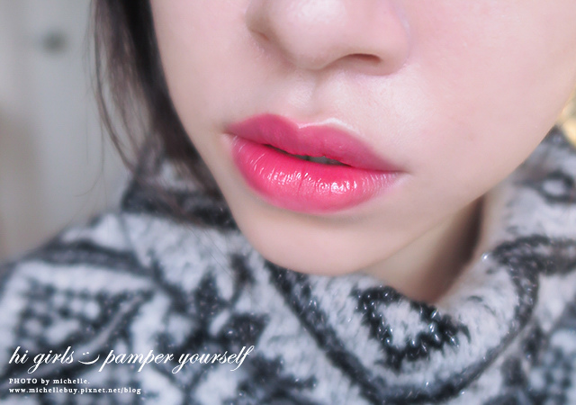 屬於很飽和的顏色,淡淡上一層時會有唇蜜的效果