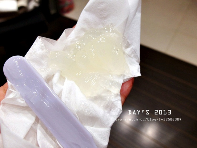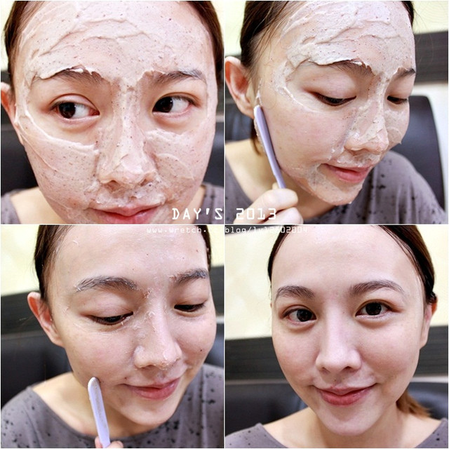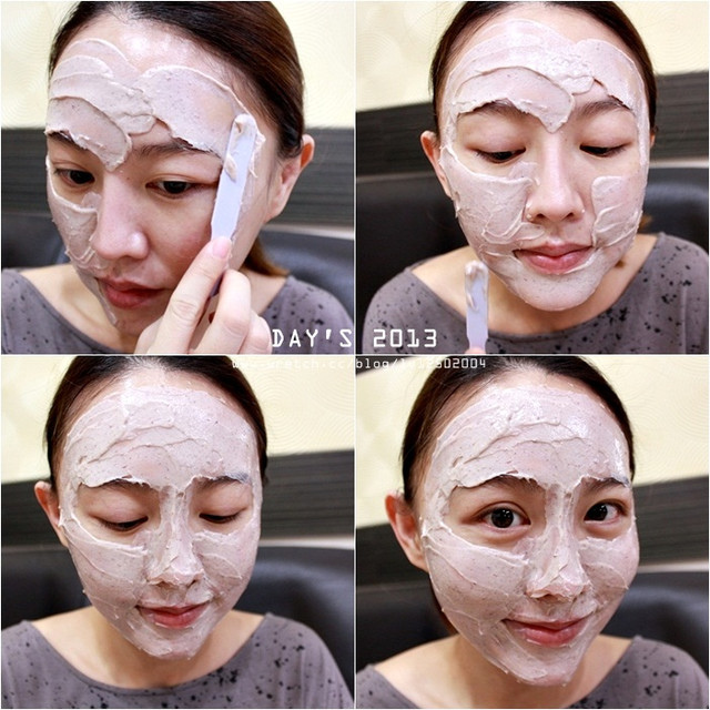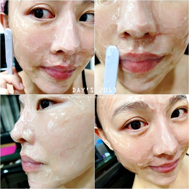 等到面膜瓣乾狀態後就可以用挖棒刮除,清水洗淨了